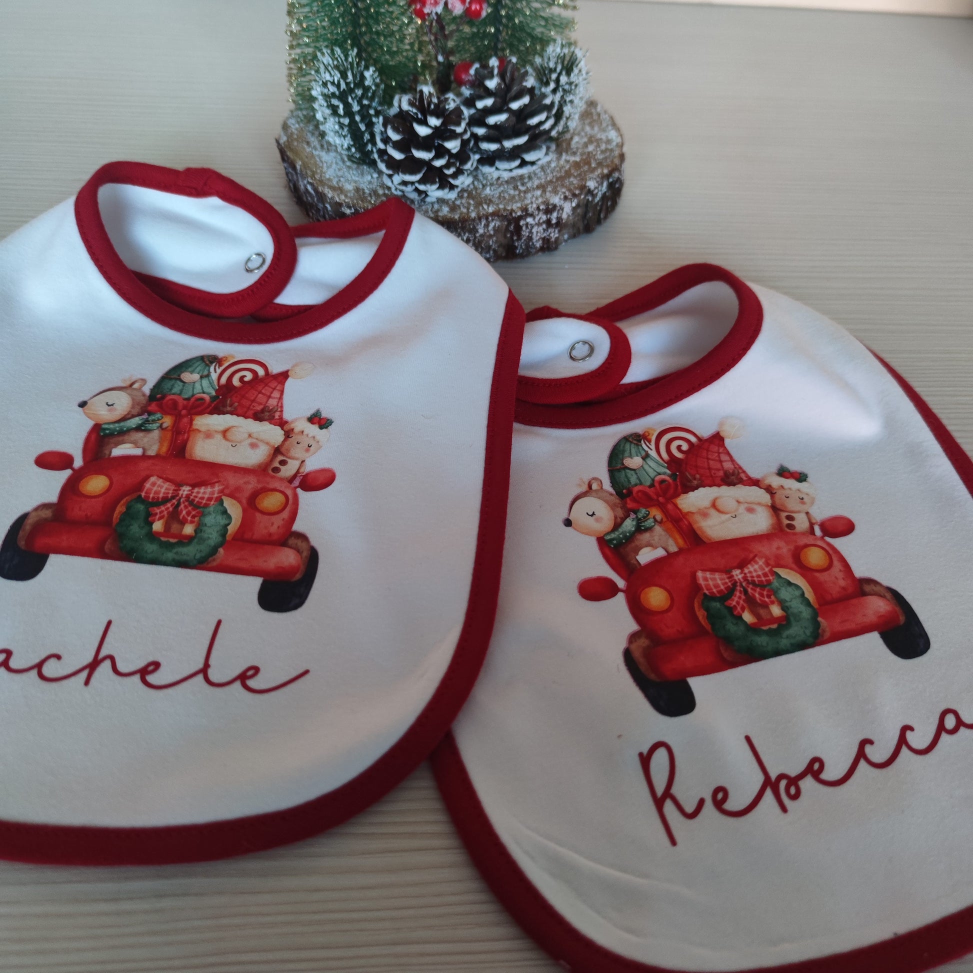 Bavaglino Natalizio in Cotone - Personalizzato con Disegno e Nome