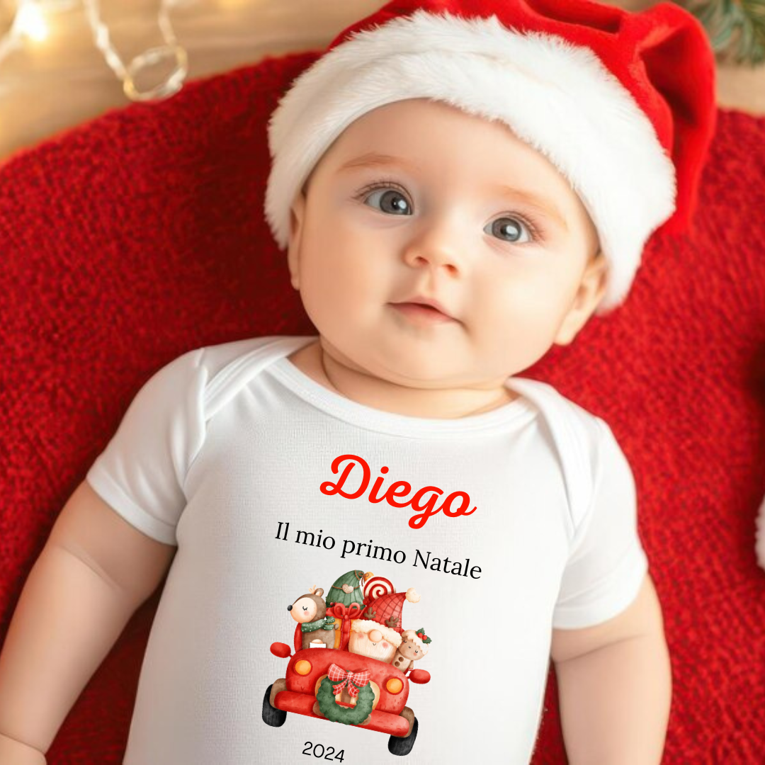 Body Natalizio Manica Corta Caldo Cotone Bianco - Made in Italy - Personalizzato con Disegno e Nome