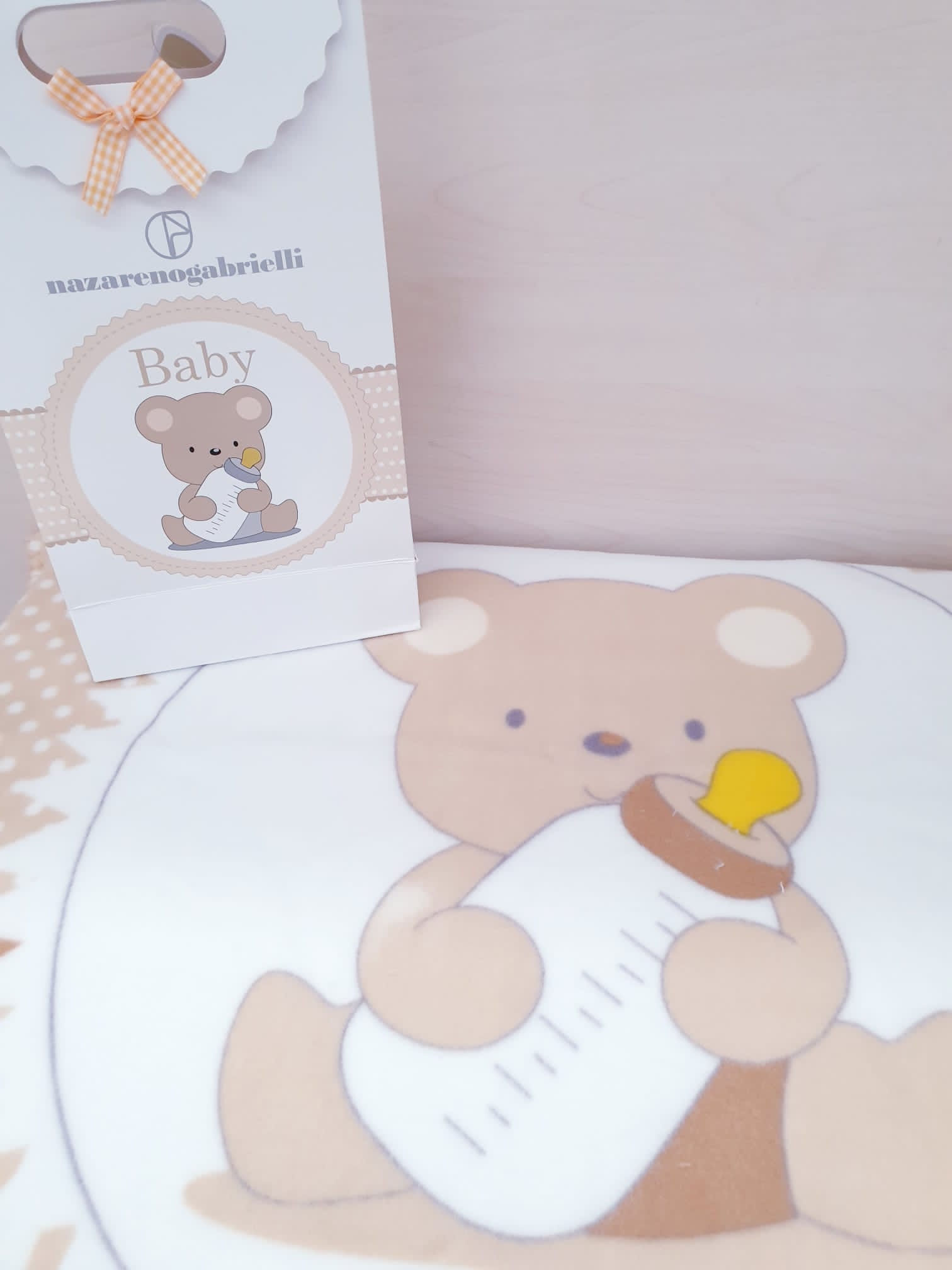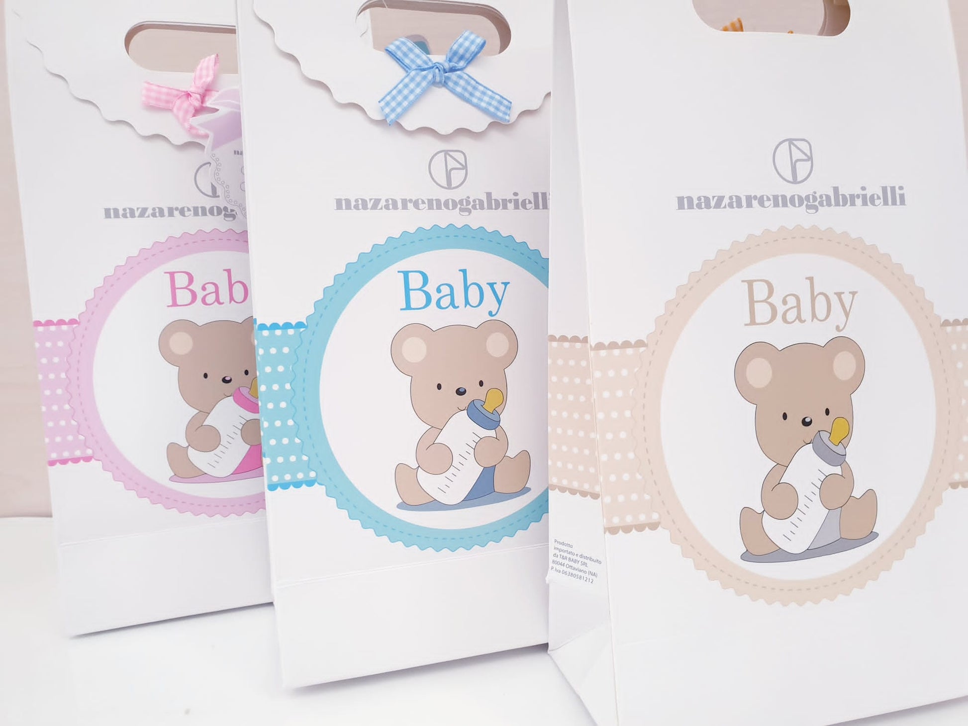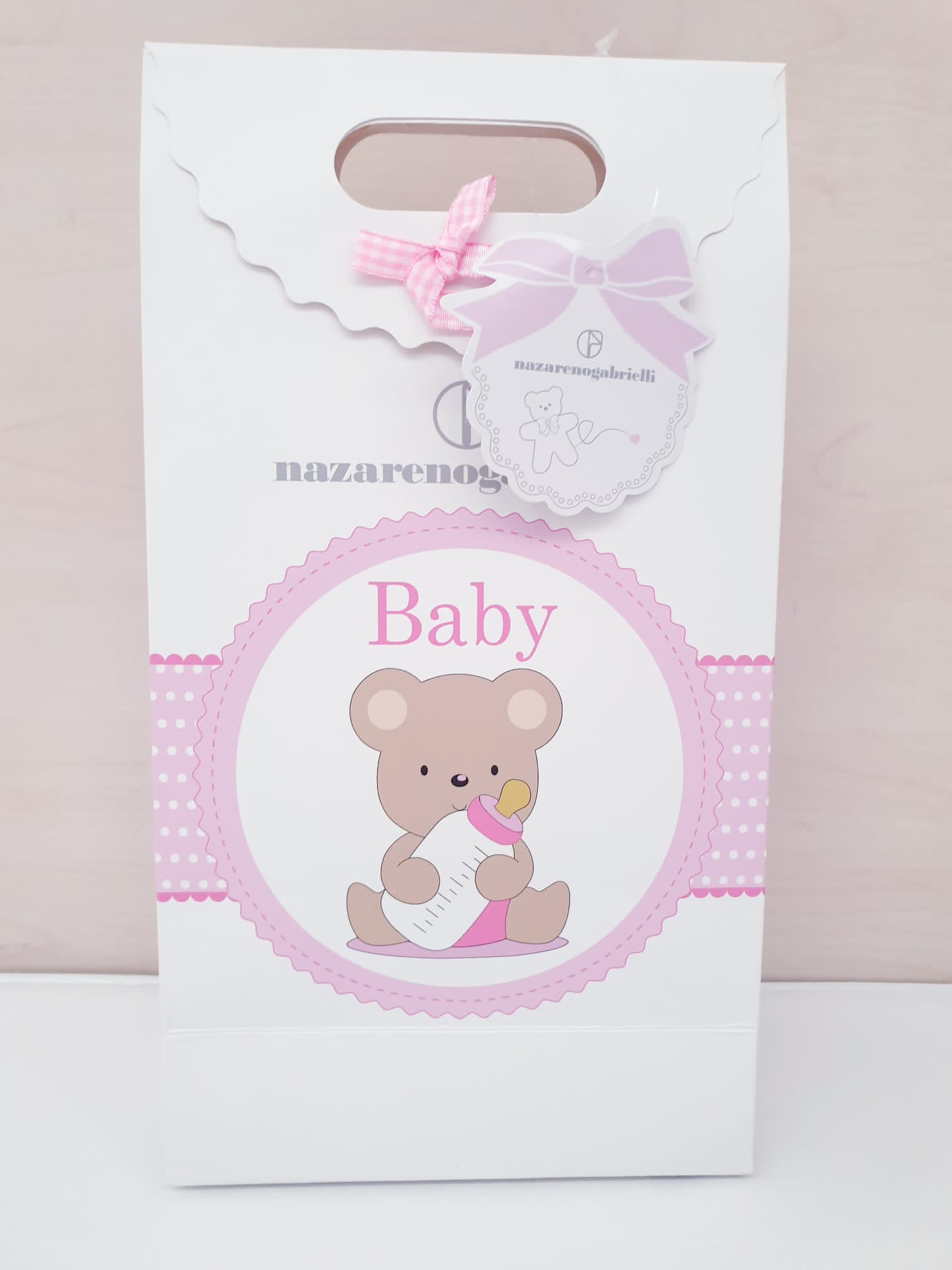 Perfetta come piccolo pensiero per una nascita, confezionata con borsetta in cartone con fiocchetto, ideale da regalare.